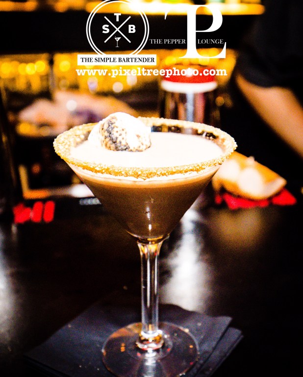 This cocktail is created by Josh Laney, at the time he was working at The Pepper Lounge downtown. He realized we were missing a dessert cocktail on our menu. Originally the marshmallow was doused in 151 rum and then lite on fire. Unfortunately it didn’t stay lite for very long. Then I remebered how I read about a Misto can sprayer with 151 rum being used like a blow torch. It was the only way we could get the charred effect and the smell. Oh, the smell of the cooking marshmallow is one thing that always stay with you.